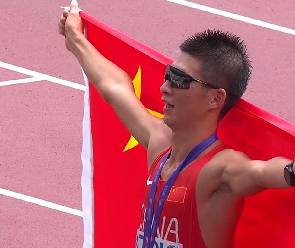 一度以为要夺冠,王朝朝夺世锦赛20公里竞走银牌,拍照傻傻没摘墨镜